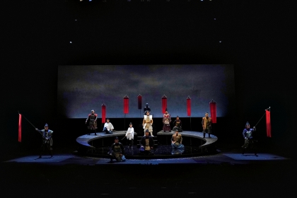 『子午線の祀り』は、「平家物語」を題材に“天”の視点から人間たちの葛藤を描き、平知盛や源義経をはじめとする源平合戦に関わった登場人物たちを躍動感をもって浮き彫りにし、心理描写も巧みな壮大な歴史絵巻に仕立て上げました。また日本語の“語り”の美しさと荘厳な響きを引き出す群読という独特な朗誦スタイルが随所に用いられ、演劇史に確固たる地位を築いてきた傑作です。