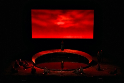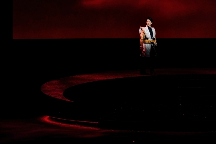 その伝説的な舞台を、2017年に野村萬斎の新演出により世田谷パブリックシアターで上演しました。世田谷パブリックシアターの芸術監督として長年にわたり、「人間の営みを俯瞰して眺める狂言的なマクロの視点」と「人間の精神性や情感に迫る能的なミクロの視点」で古典と現代が融合した作品を数多く演出してきた野村萬斎。その集大成ともいえる本作は、宇宙的な視座を持つ作品の深い考察、個人と全ての人間の運命を包み込む宇宙の対比、朗誦による日本語の美しい響きと身体性を活かしたダイナミックな演出が高く評価され、読売演劇大賞最優秀作品賞をはじめ、数々の演劇賞(*1)に輝きました。